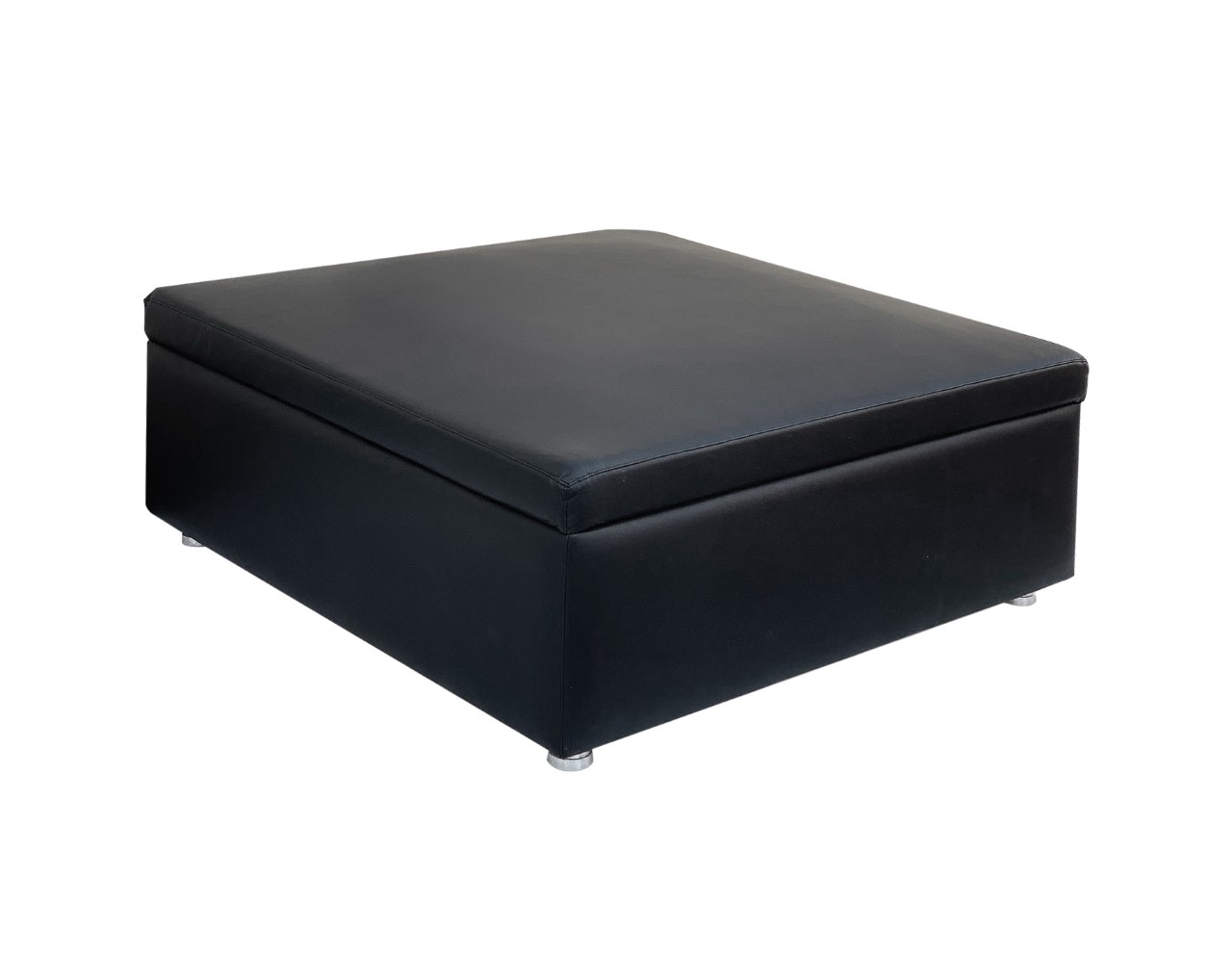 Puff quadrado em corano preto, podendo também ser usado com capa na cor marrom.