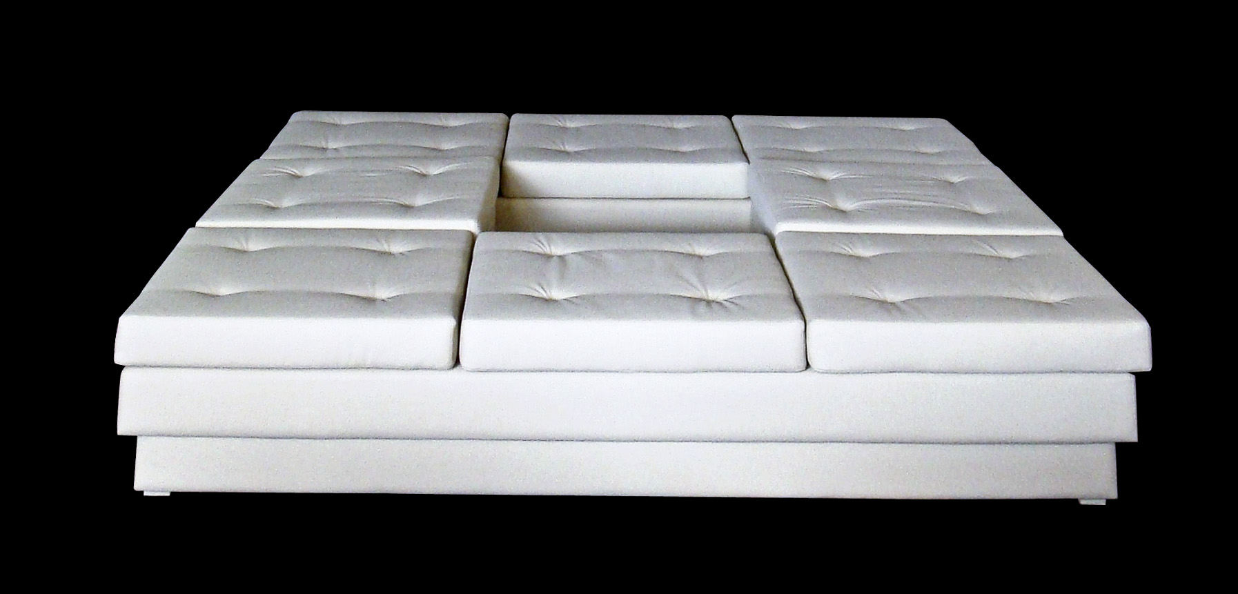 Ilha de puffs em corano bege com detalhes em captonê.