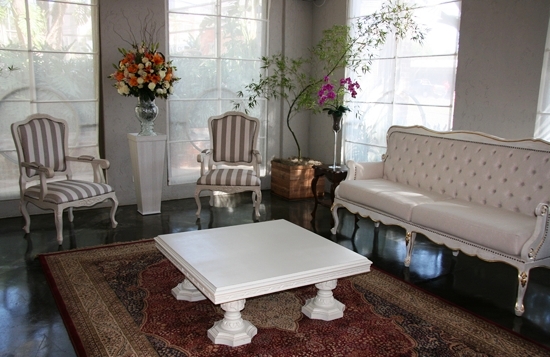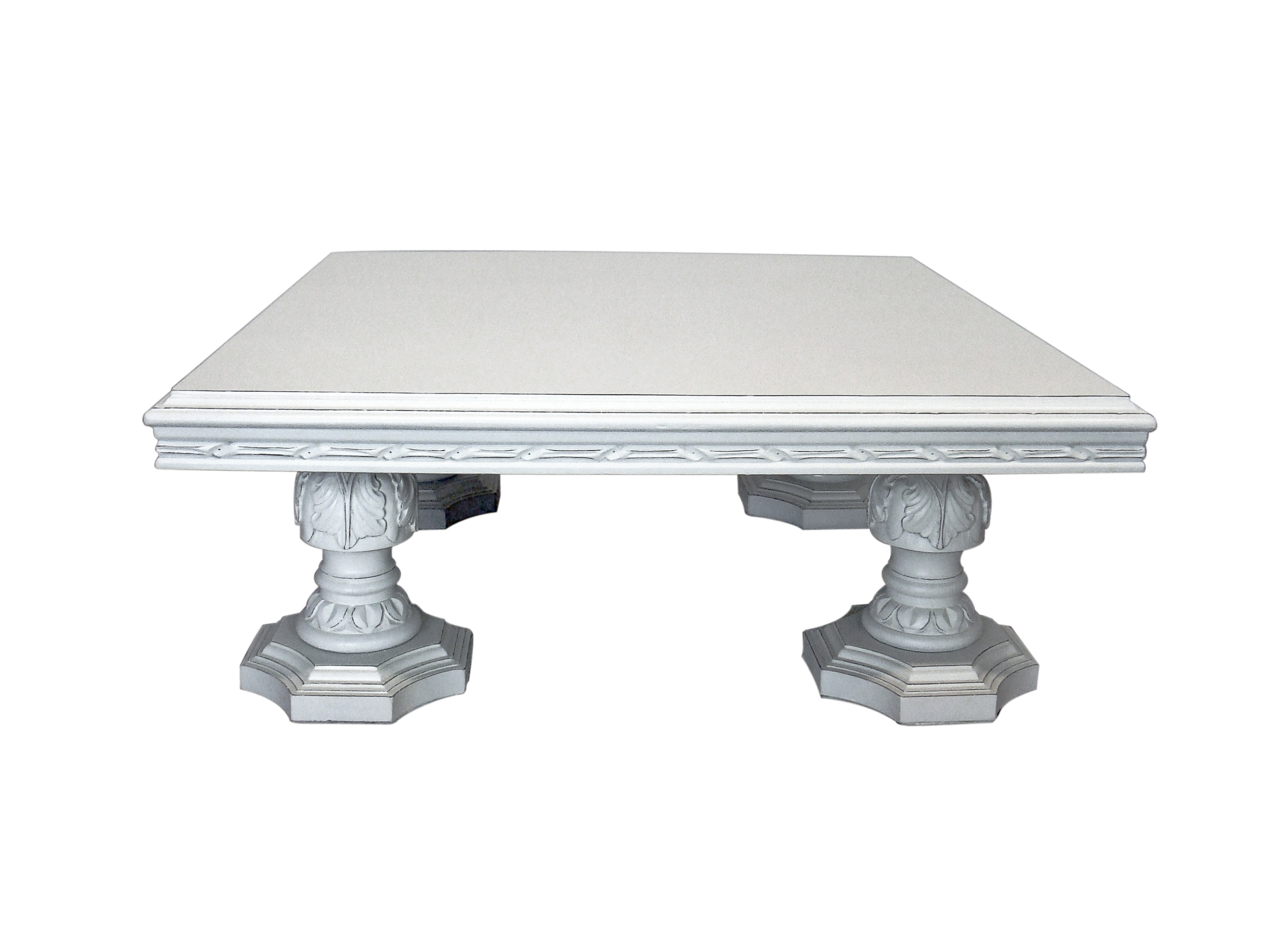 Mesa de centro quadrada estilo provençal.