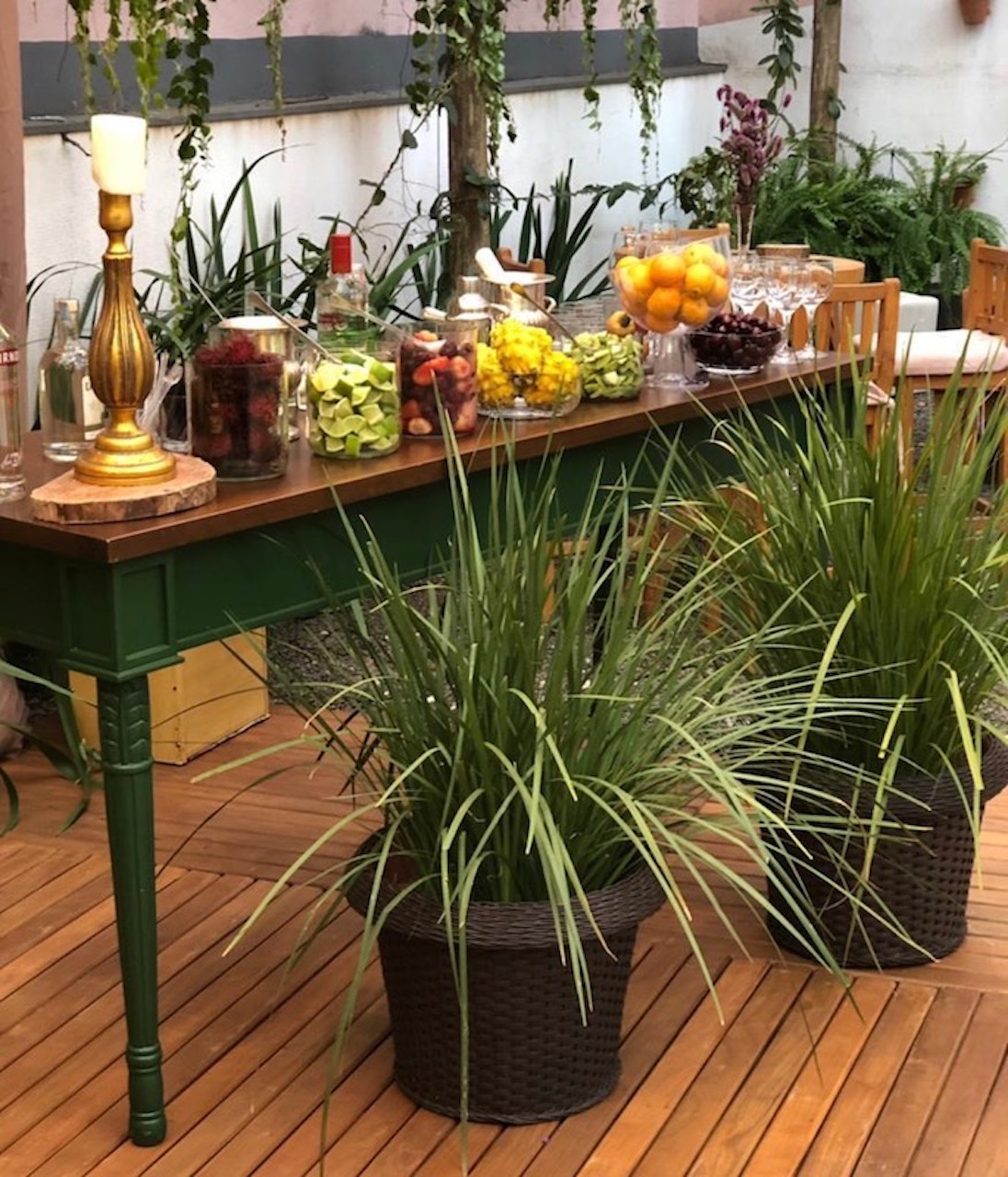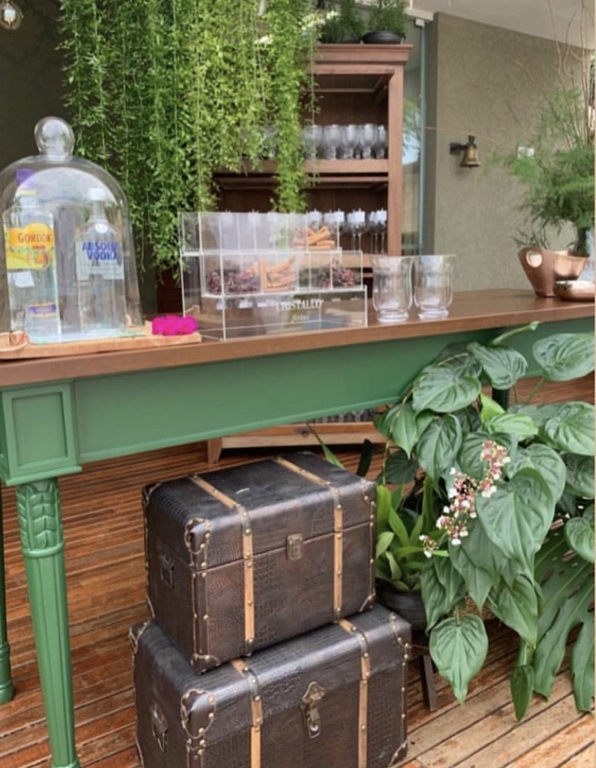 Aparador exclusivo pintado a mão em tons grafite e detalhes em folha de ouro.